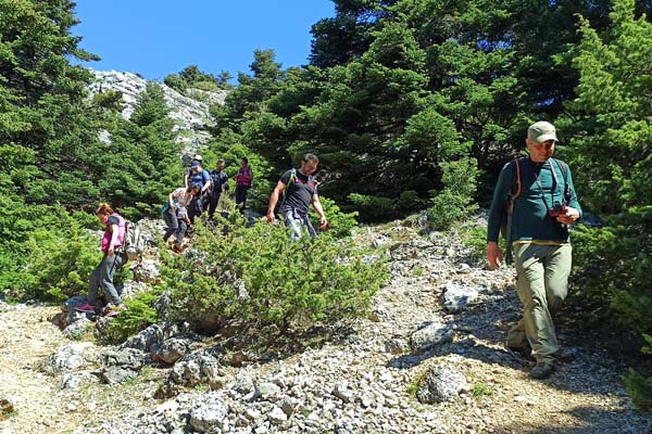 Πεζοπορούμε μέσα στα έλατα, στον πυρήνα του Εθνικού μας Δρυμού.